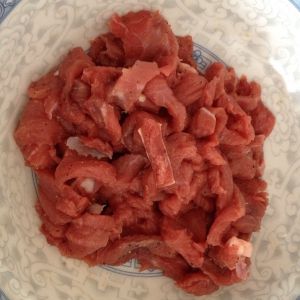 牛肉切小片加淀粉,盐,胡椒粉少许抓匀腌制十分钟