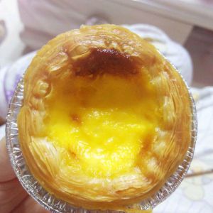 将蛋挞液均匀倒入蛋挞皮中,倒入八层就好!
