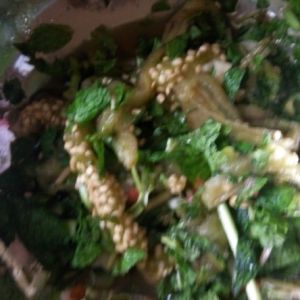 第三步,放上香葱,大蒜,辣椒,盐,酱油,适量。