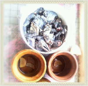 乌鸡切块,每个瓦罐放三四块即可,放一片姜片。