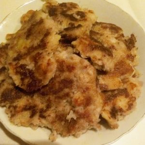 把搅好的馅团成团压成饼,电饼铛里放点油,把饼放入两边煎焦黄放点胡椒粉即可