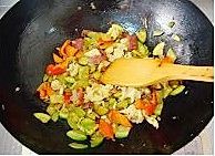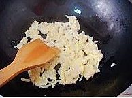 锅内放油,油热后加入蛋液,炒至熟时盛出备用。