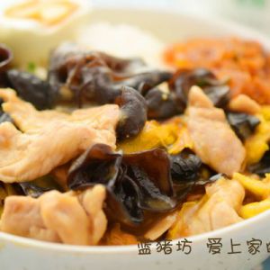 放入泡好的黄花、木耳、炒好的鸡蛋和适量水淀粉,再放入料酒和盐翻炒入味
