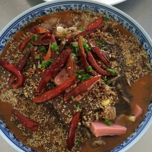 另取锅放油油温达到4成热加入蒜蓉、干辣椒、花椒、芝麻炒出蒜香把油倒入碗里出锅!