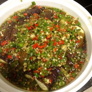 蒸茄子的同时准备好其他材料,蒜末、姜末、尖椒切末、小米椒切末、花椒