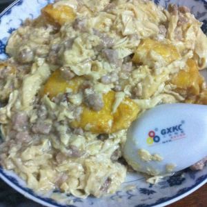 我先炒了一下支竹,是错的,应该先炒肉,再放支竹和豆腐,适当加点水。加盐和蚝油调味。