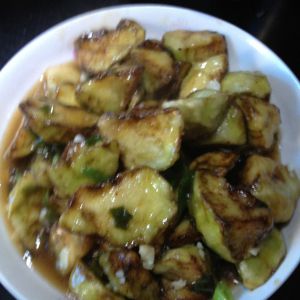 最后倒入茄子''放入蒜末'''出锅''(蒜末一定要放完茄子最后放蒜'''才有味)
