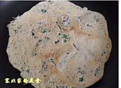 等面糊表面凝固后,翻面,烙至两面金黄即可。