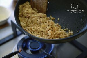 放入米饭,炒散,使米饭匀均地裹上咖喱酱