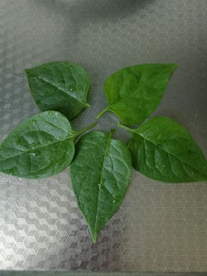 后院摘的叶子,我这边叫紫郭叶,老叶子上会长紫色的点点的,我摘的是嫩叶子