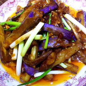 锅里炸茄子剩余的油,可以炒茄子了,把蒜瓣豆瓣爆香,倒入茄子,葱段,倒入调的汁,放一点十三香,起锅。在最后炒茄子时,千万不要放盐。因为炸茄子前有裹盐,豆瓣,蚝油都有盐,不然会咸的。