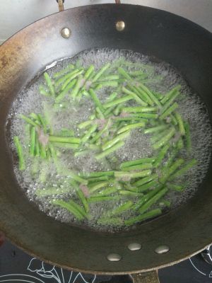 豆角切断放入开水中焯,,大概焯个五分钟左右。。有喜欢吃比较生的就焯时间少些。捞出来放在凉水里。