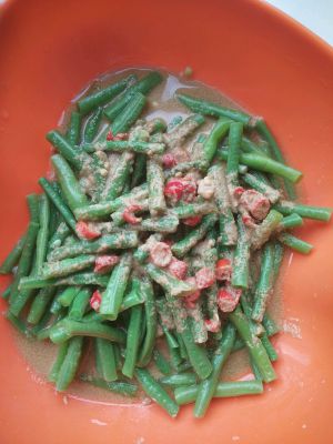 把豆角从凉水里捞出来,直接把调的麻汁倒上。。。好啦。就这么简单的。对了也可以把它用来拌凉面条哦,也是非常美味的!