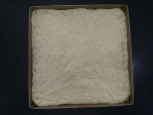 用竹签在面团表面叉上小洞,放入烤箱发酵45-50分钟。