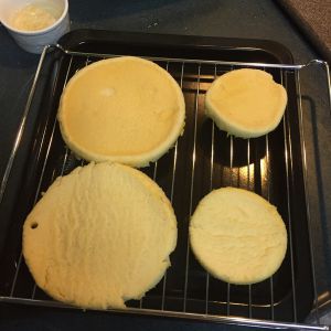 第一步:烤好的戚风放凉后切片待用,图片是上一次做双层南瓜慕斯时候拍的。凑合看看,哈哈