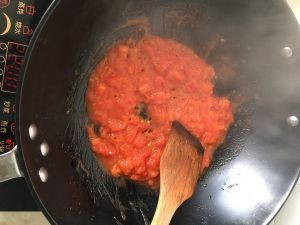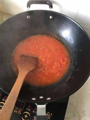 热锅放油,转大火放入番茄丁炒到图片这个程度