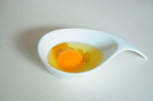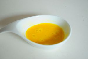 鸡蛋里放入1汤匙香油,这样鸡蛋花会摊得更薄