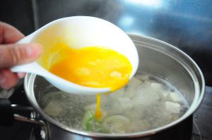 水开后把鸡蛋在锅内均匀地画圈倒入