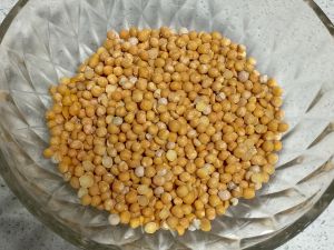 浸泡好的豌豆明显变饱满,再次清洗几次,并将没有去干净的皮挑去。