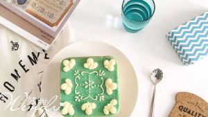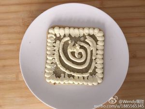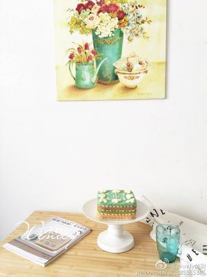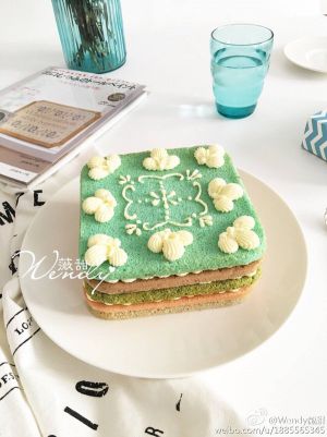 所有蛋糕片叠完,最上层用惠尔通32号挤出花型装饰表面。