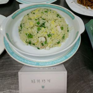 加入猪油倒入蛋液等待10秒(这时蛋液大部分还处于液态),放入白米饭大火快炒至散,待米粒松散呈金黄色。倒入红肠粒、虾仁粒和青豆翻炒一分钟,直至锅内食材拌炒均匀,加入鸡粉,味精调味,口味重的食客可再加入少许盐(鸡粉本身就比较咸了),出锅前撒入之前备好的葱花翻炒两下即可出锅。好的炒饭里不会出现大块鸡蛋的,鸡蛋会均匀分散在米饭里大小和米粒差不多,如果你想成为炒饭大师还需刻苦练习才行。