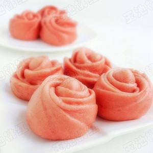 用手把中间掐细,然后用刀从中间切开,两朵玫瑰花就做好了。其他的依次做好。