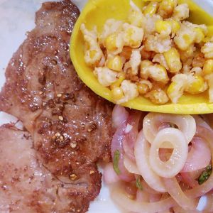 装盘,吃的时候把芒果汁浇在玉米粒上