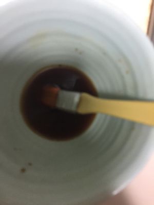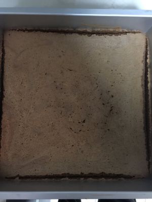 每层戚风表面刷一层咖啡和酒的混合液再倒入一半的慕斯混合液。