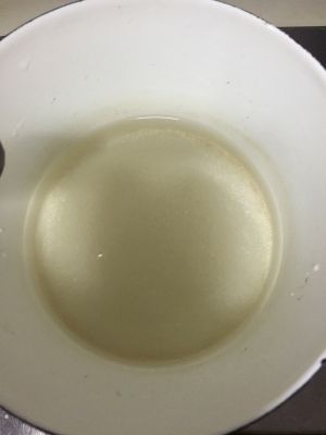 开始做慕斯部分。吉利丁片冷水提前泡软化,糖加水在炉上烧开后关火。