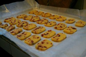 接着将蔓越莓干放入,如果颗粒大的要切碎