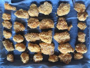 简单烤箱版的,烤箱开170度,鸡米花摆好。25分钟就可以了。