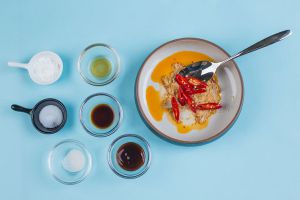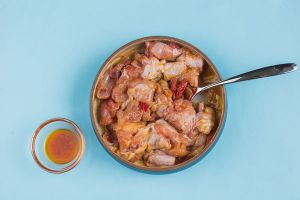 鸡腿块和酱料搅拌均匀,腌制4小时以上或者冷藏过夜。