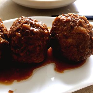 砂锅里倒入老汤!生抽蚝油盐冰糖下入肉丸子大火烧开转小火炖一个半小时就可以了!想让它更入味就锅中泡一晚上第二天早上吃!(喜欢浇汁的朋友,锅中放老汤三大勺加淀粉勾芡淋在狮子头上即可)
