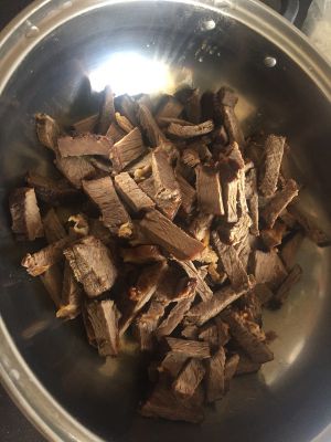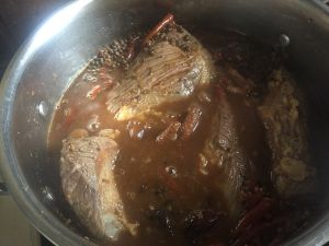 牛肉改刀(顺纹路切)放入卤水中,我是自己炒的麻辣卤水,如没有了卤水,可以用李锦记的卤水味道也不错。