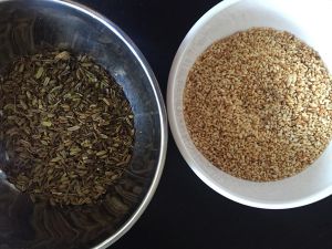 辣椒面,花椒面,孜然粒,孜然粉,花生碎,芝麻,冰糖粉,盐混合备用。