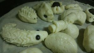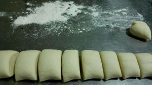 面粉加入水和酵母揉成面团,表面光滑后在35-60℃发酵45分钟。