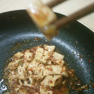 先炒酌料 然后加少量汤汁 最后将豆腐放入 5-10分钟即可