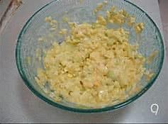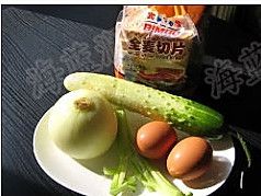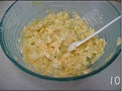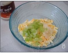 洋葱碎、芹菜碎和鸡蛋碎混合。