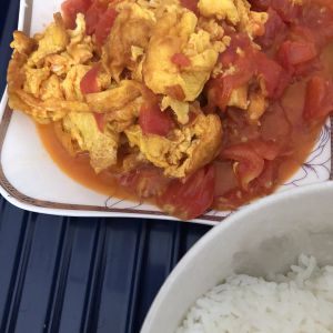 西红柿下锅咯,放盐(我个人喜欢分开炒)