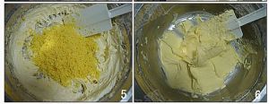 蛋黄碾碎筛入打发好的黄油里,搅拌均匀