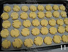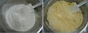 玉米淀粉和面粉混合后筛入黄油里,用橡皮刮刀切拌均匀。