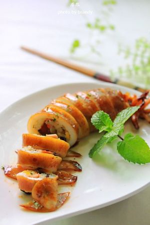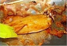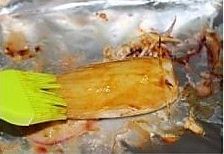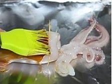 烤箱预热好,鱿鱼表面刷一层烧烤酱,