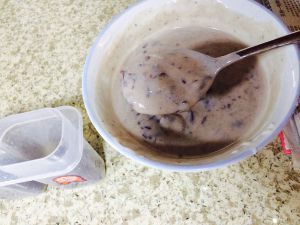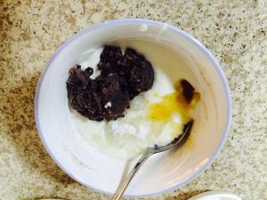 酸奶加糖、蜂蜜、豆沙搅拌均匀。
