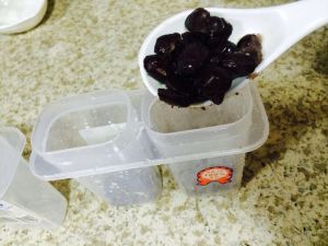 磨具洗烫干净,放蜜豆到磨具的一半。