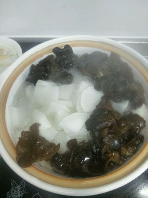 再放入泡发好洗净的黑木耳,放两勺色拉油,开始煮10分钟左右