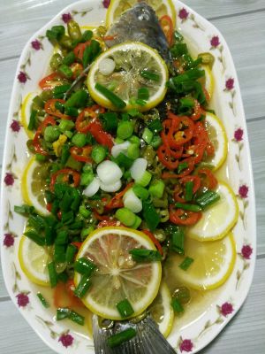 再把辣椒切细,铺鱼身上,准备上锅蒸20分钟就可以了,没拍在锅里的图片哦