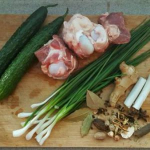 凉水下锅 将棒骨和大料 香葱 姜 料酒等一起下锅