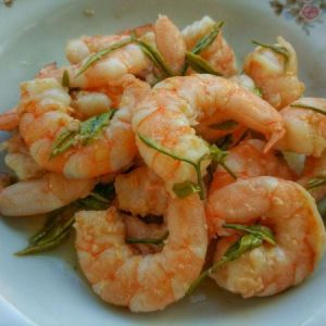 锅里放入橄榄油,或者色拉油,6成热便放入虾翻炒,颜色稍变就出锅备用。再放入点油,加入姜末翻炒,加料酒爆香,立即放入之前的虾。翻炒两下后,加入4勺子龙井茶水和全部的茶叶,翻炒大约30秒,出锅