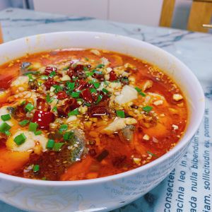 锅内倒油,放入花椒八角火锅料炒香,加入适量清水烧开,喜欢配菜的可加配菜,捞出放入碗里,放入腌好的鱼片大概30秒捞出