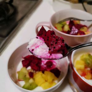 蒸好之后大概是这个样子,之后继续等待放凉摆放喜欢的水果就好了,冰箱冷藏味道更好(✪▽✪)